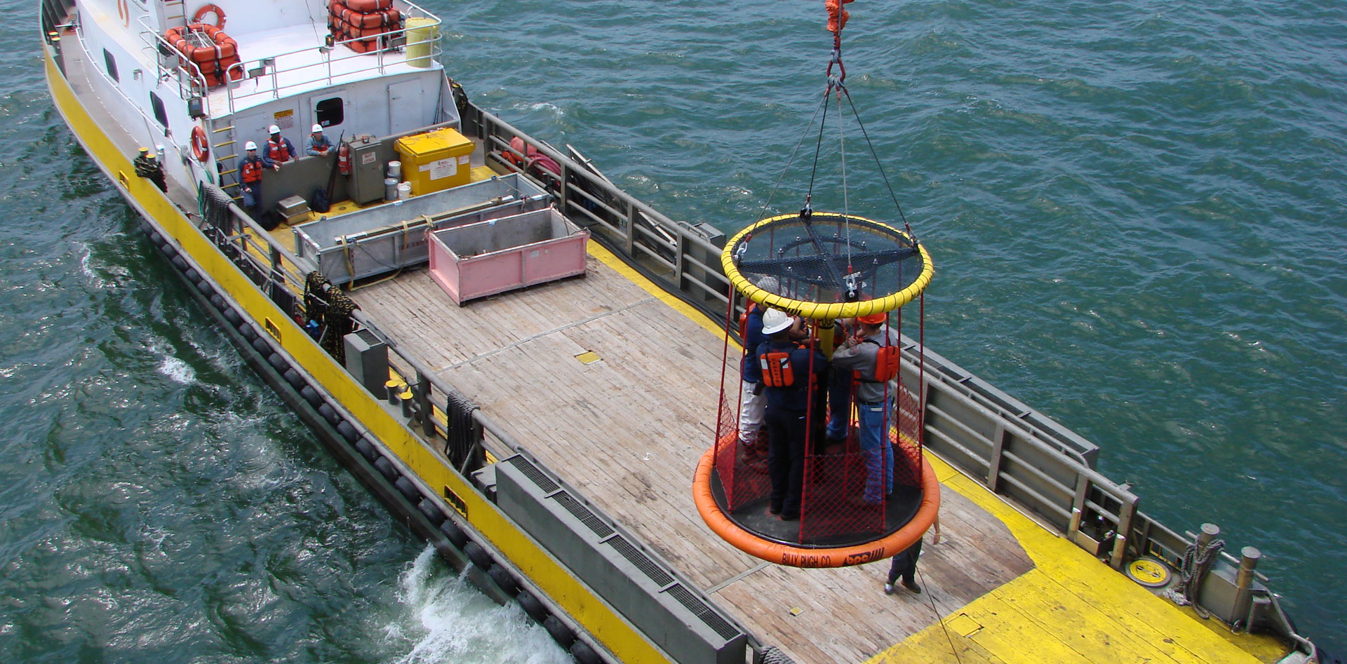The Billy Pugh X-904 transfer (4 to 12 person) device is used to quickly and effectively transport personnel via crane in an offshore environment.